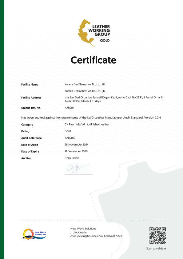 Firma gerek iletişim gerek zamanlama gerekse ürün kalitesi bakımından başarılı. Gerçekten profesyonel olan Karaca Deri’yi herkese tavsiye ederim.